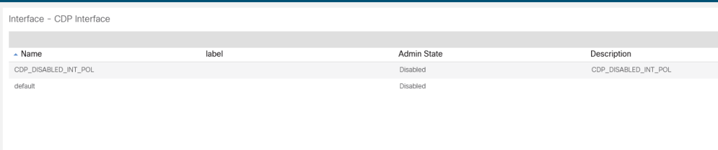 Nice right? Now let’s change something. Lets disable CDP. Comment out the CDP enabled policy and create a new disabled policy. Update the reference in the interface policy group. Save and apply!