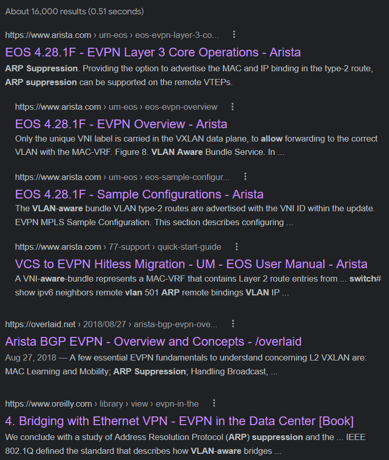 I spent countless hours trying to perform some interoperability testing and PoC VLAN-Aware bundles between these two vendors. Arista’s EVPN-MPLS documentation is very hard to find and overall lacking. Juniper has a lot of documentation and a lot of examples. The problem is that some of the documentation and examples conflict. In this specific example I am using vMX version 18.2R1.9 and vEOS 4.28.1F. Hopefully Google index’s this pretty quickly so you don’t end up like me with all purple search results.